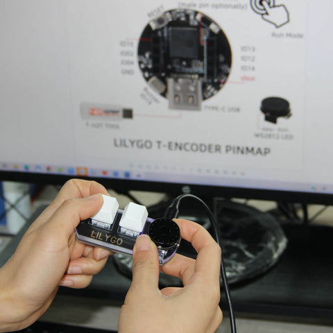 T-Encoder Shield V1.0 is an expansion board for T-Encoder, using CH552 MCU, equipped with two Customize Macro Keys and APA102 RGB Full Color LED light.