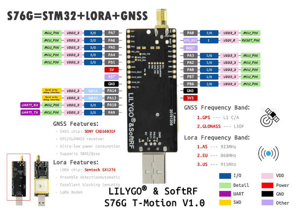 | Main chip | S76G = STM32L073Z + LoRa + GNSS Module |
