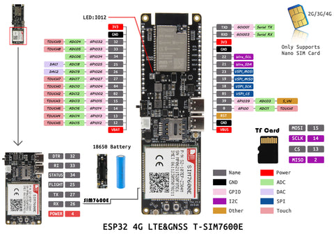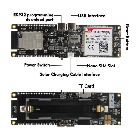 4G LTE CAT4 USB Dongle Module ESP32 Chip WiFi Bluetooth 18650 Battery Holder Solar Charge Board