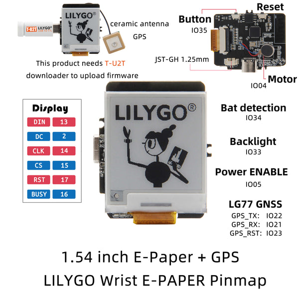 1.54 Inch Wrist E-paper GPS+T-U2T Options: